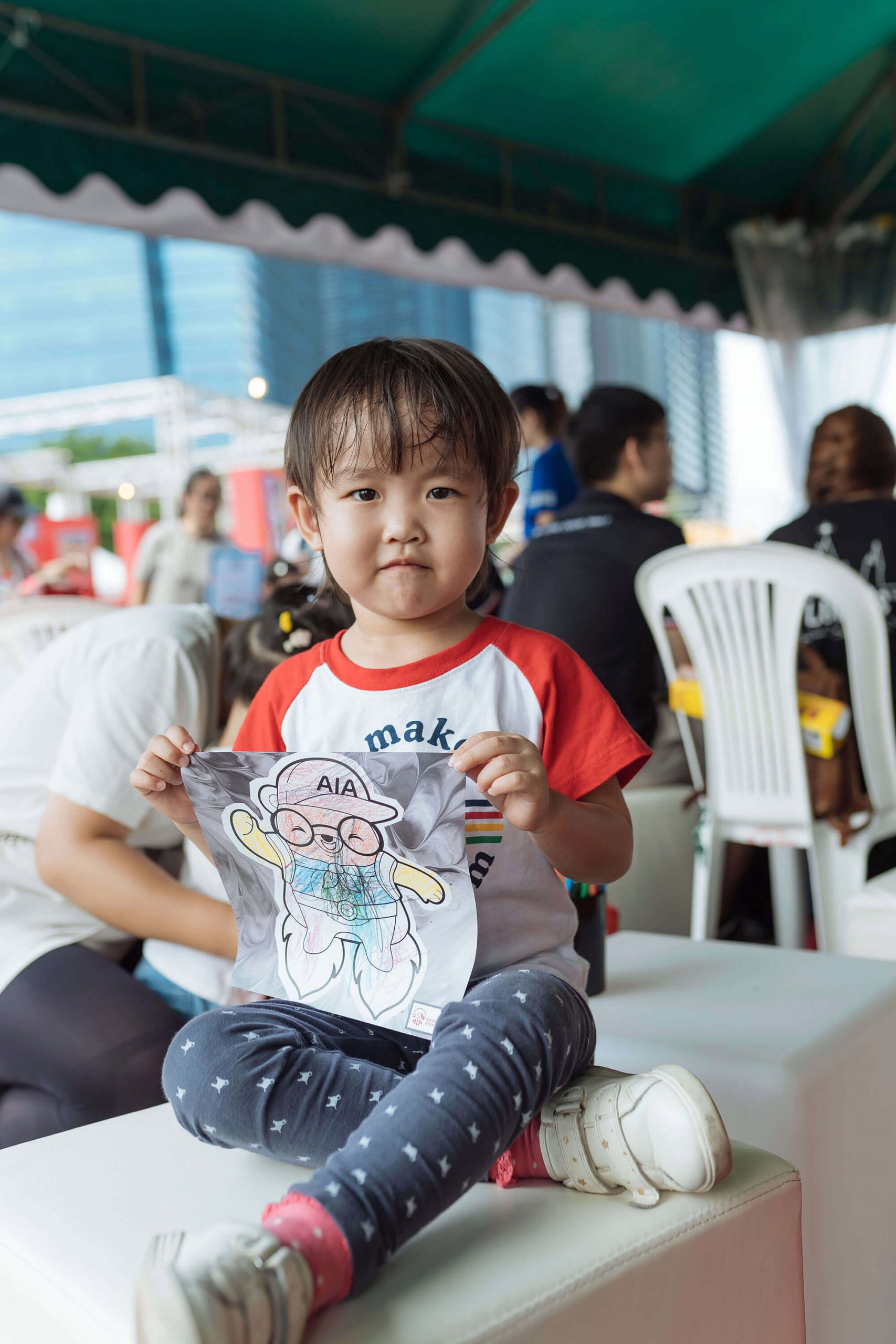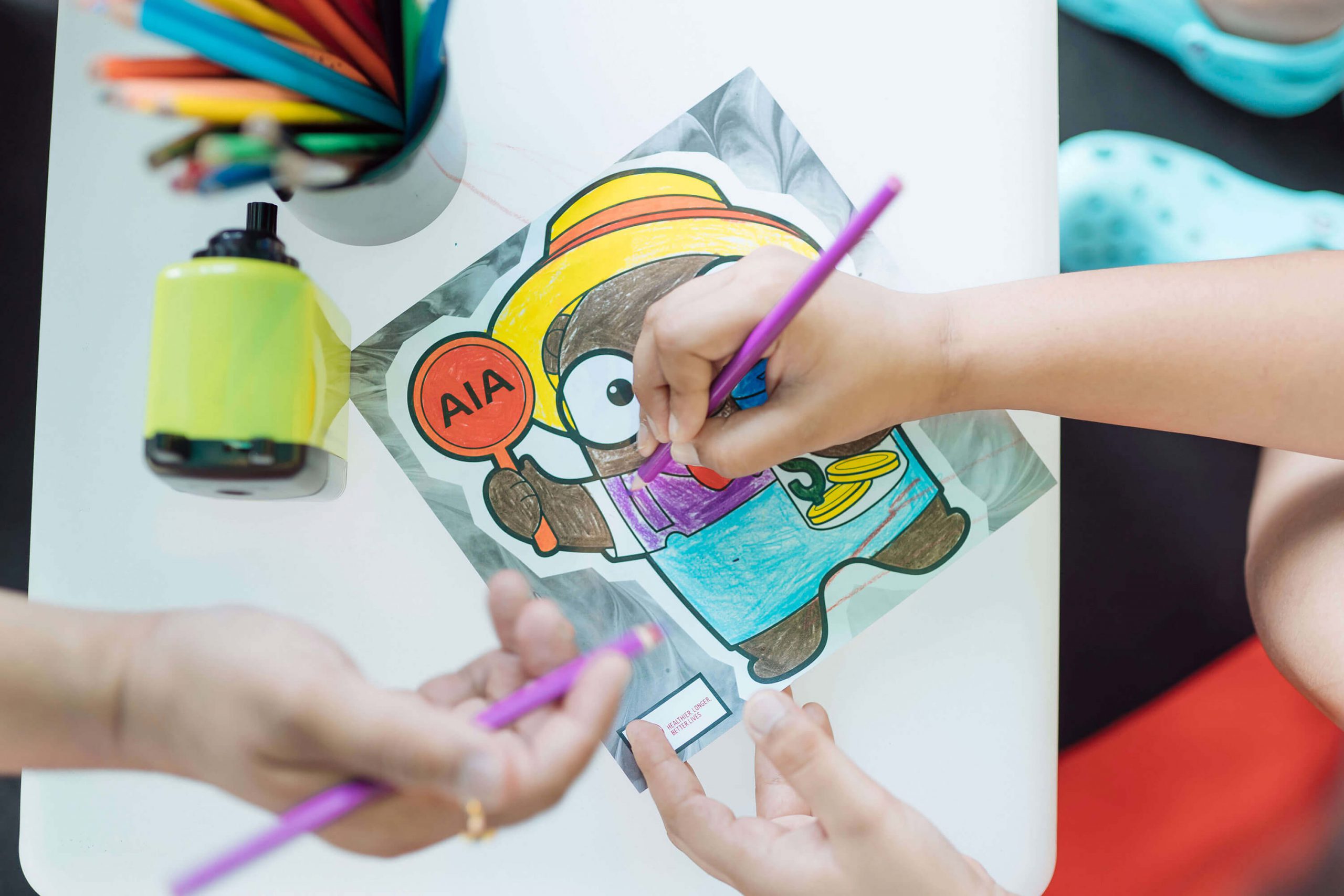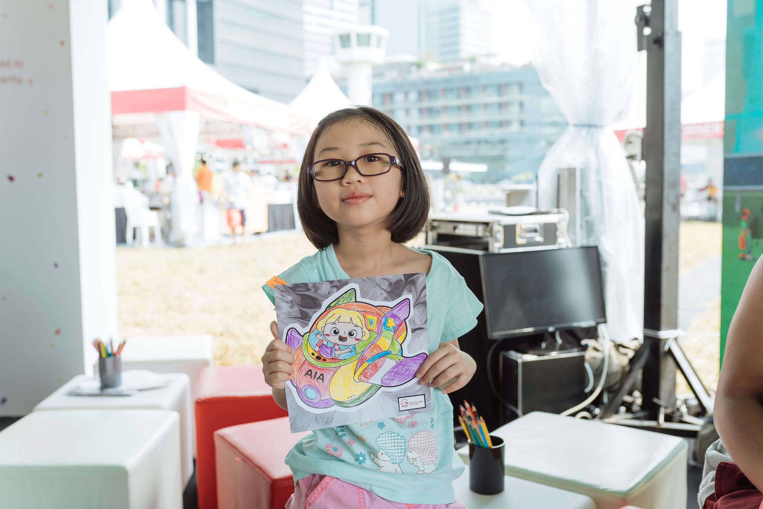 We deployed an interactive augmented reality (AR) application on several tablets, which detects the Interactive “AR Marker” that is pre-printed for the event. We designed custom AR markers with the AIA Family mascot being the overall design, with areas for users to color/write/draw, this AR markers are then scanned with our AR application.