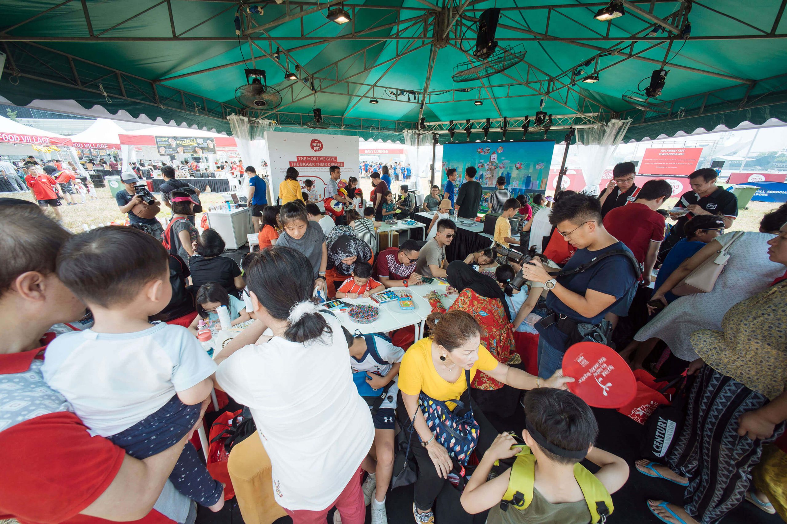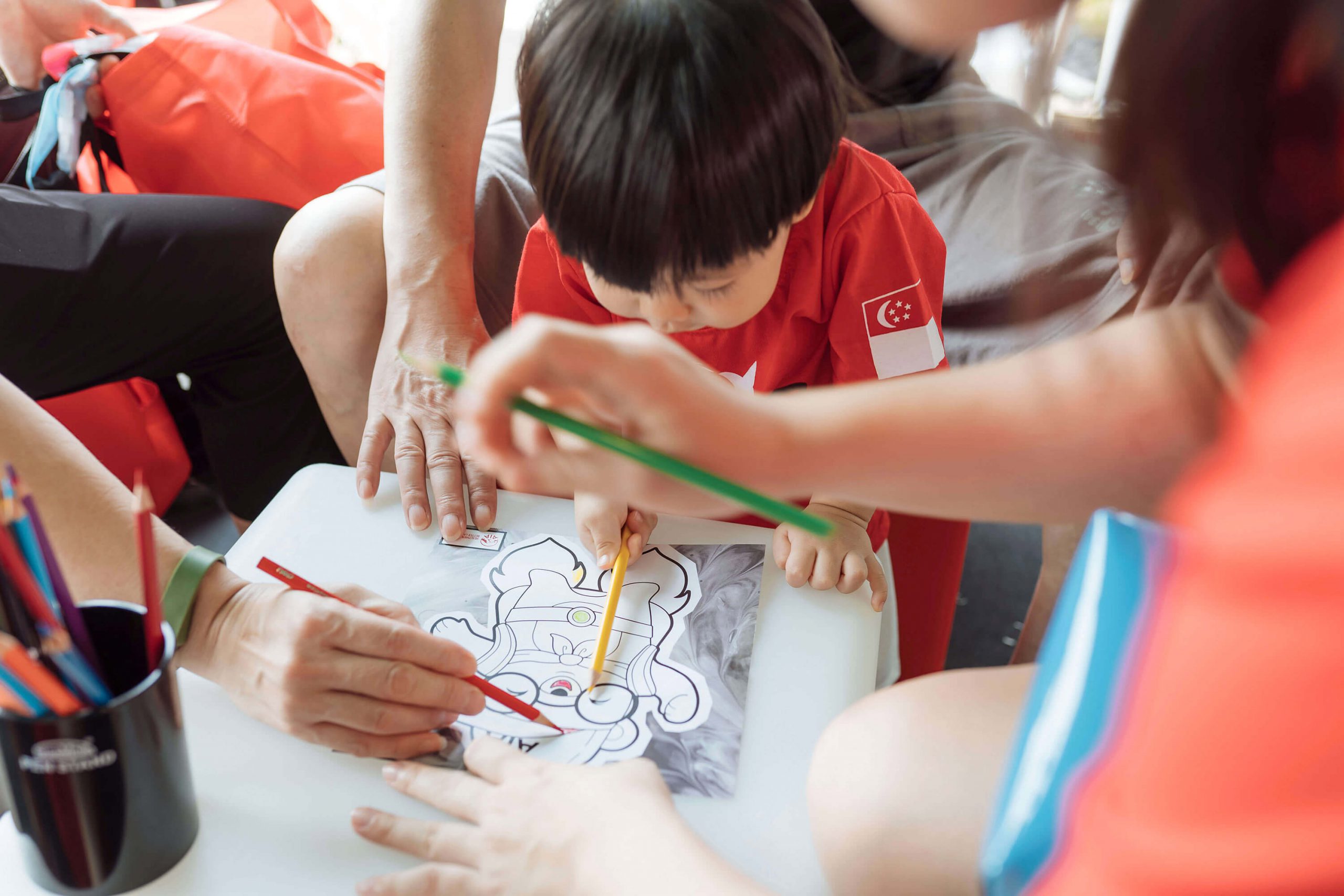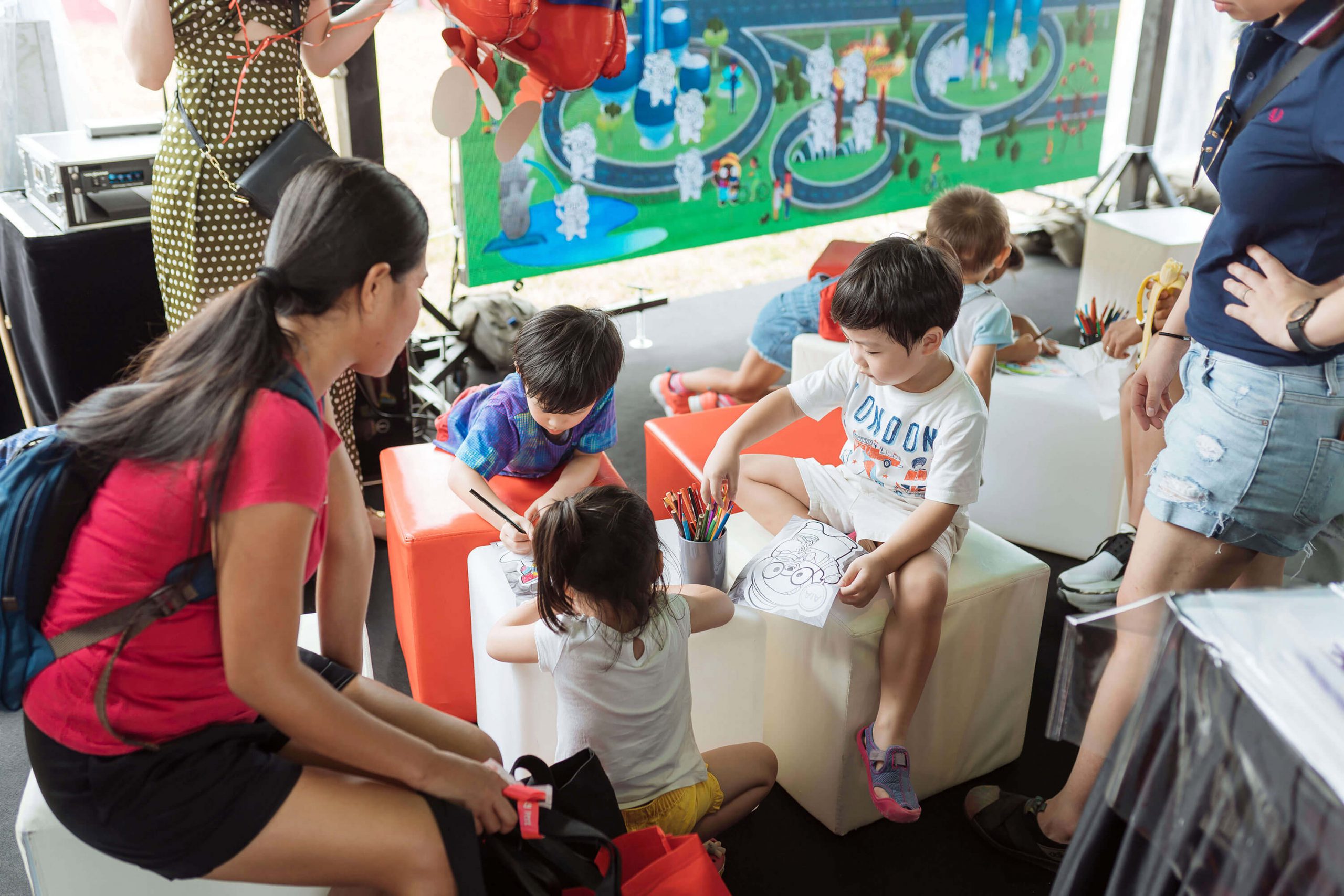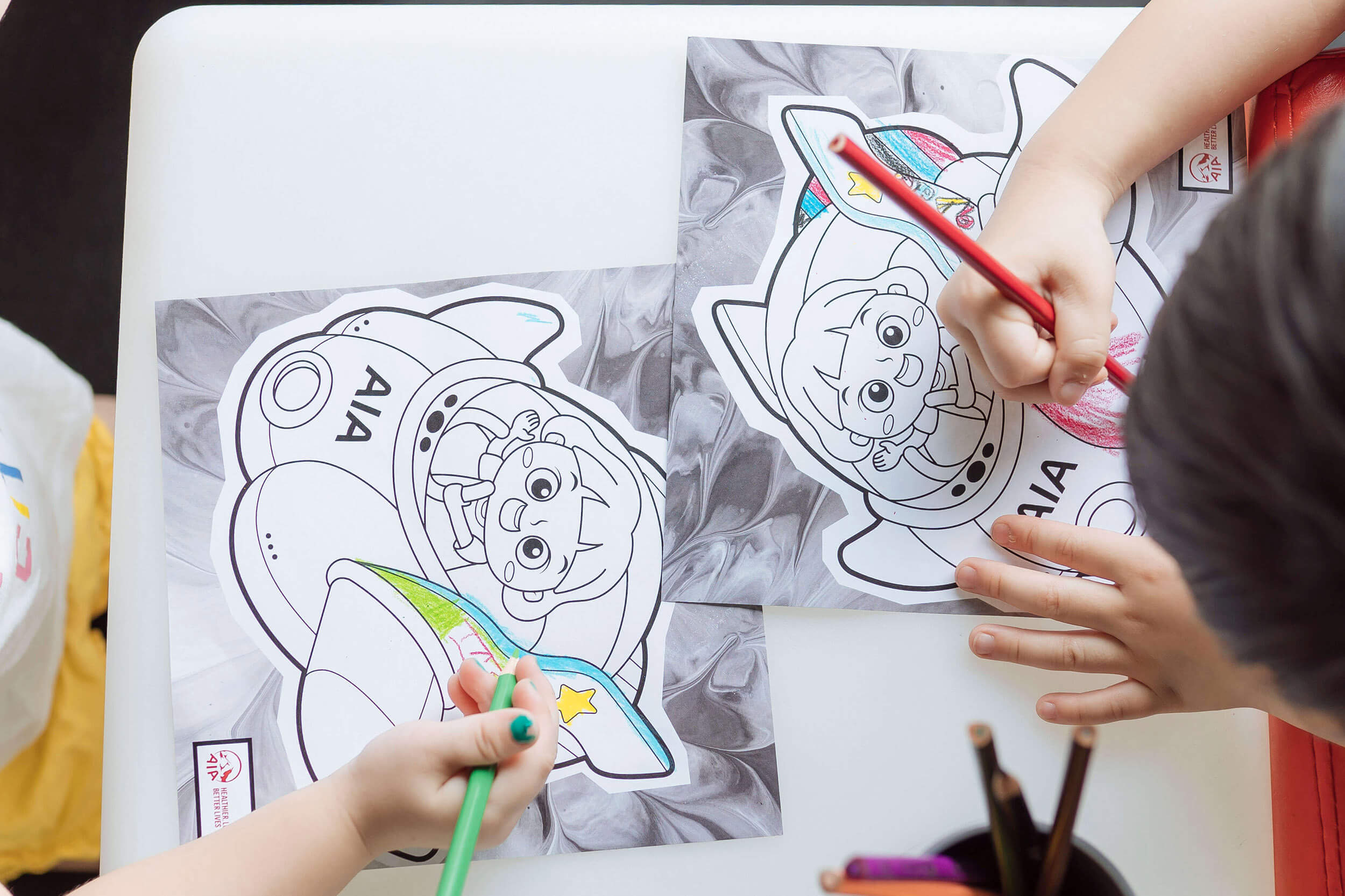 We deployed an interactive augmented reality (AR) application on several tablets, which detects the Interactive “AR Marker” that is pre-printed for the event. We designed custom AR markers with the AIA Family mascot being the overall design, with areas for users to color/write/draw, this AR markers are then scanned with our AR application.