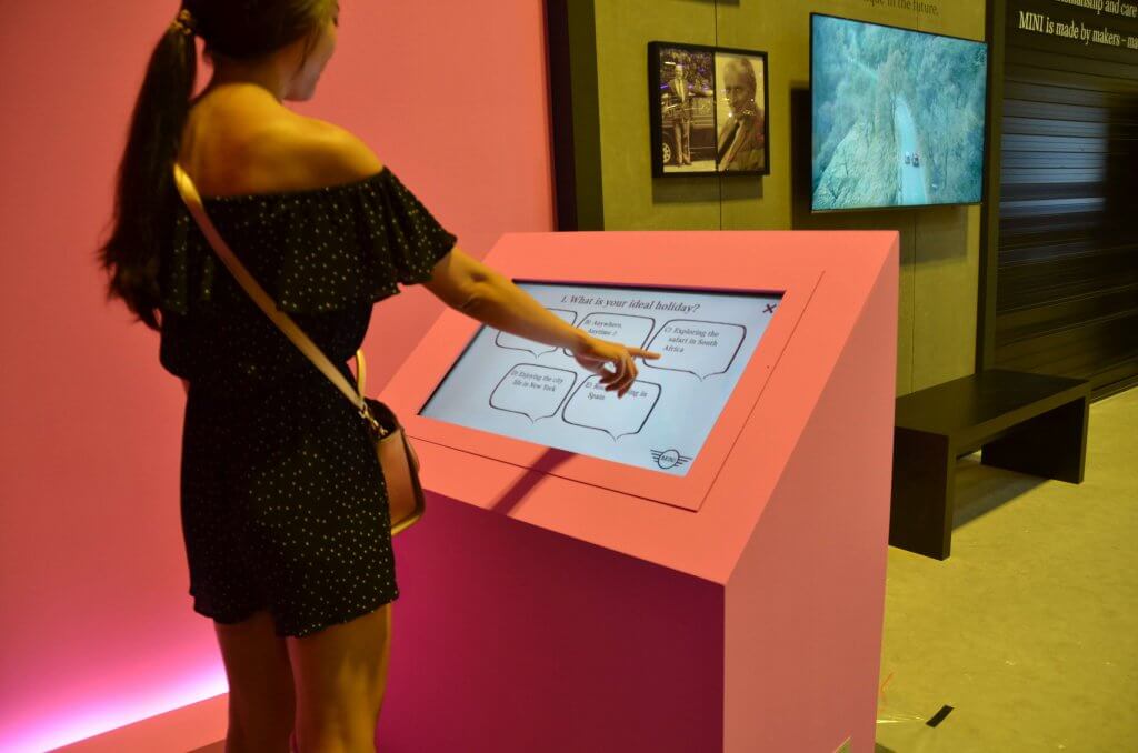 Our interactive team develop an interactive personality quiz kiosk for Mini Cooper, during the BMW World Exhibition.