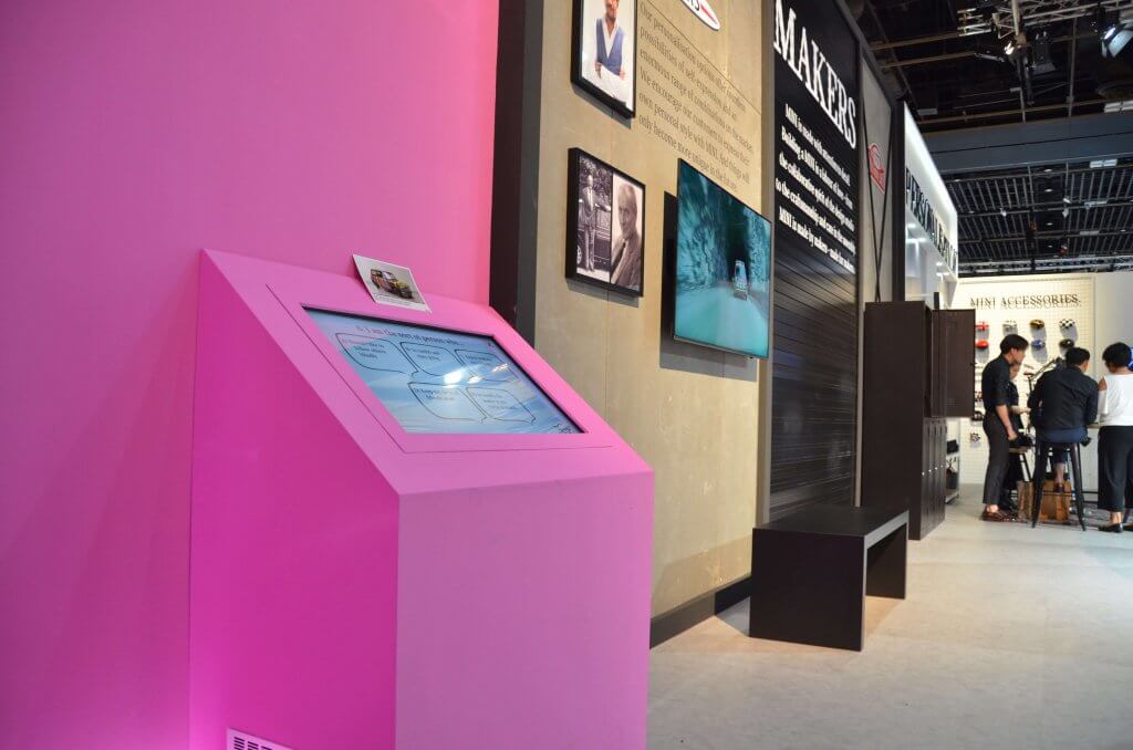The Touch Screen Interactive Kiosks provides some insight to the consumer on what type of Cars/Vehicle they are. From there customers are exposed to the various car models that Mini Cooper carries. Easy to understand, low learning curve yet effective interactive solution for the client.