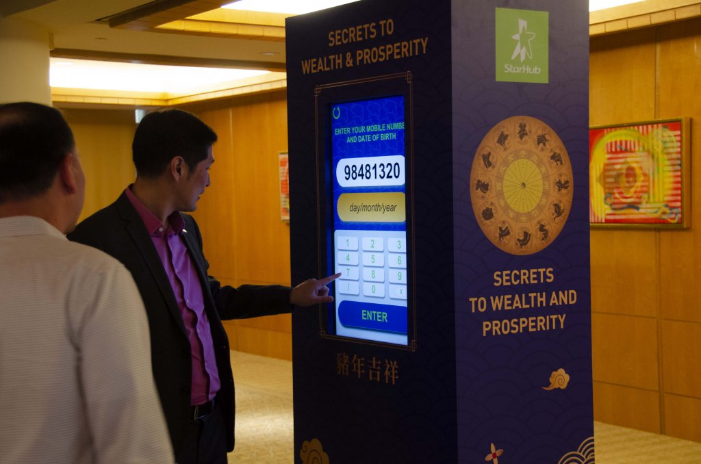 Our client wanted an interactive kiosk that is fun, where the users can find out more about their luck, wealth and health for the new year. Along with a Lucky Number that is generated by the system for the users to receive.